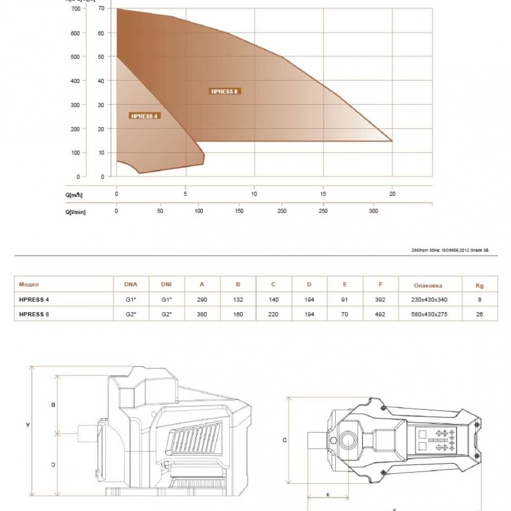 HYDROO, HPRESS 4 , HPRESS 6 и HPRESS 8 са хоризонтални, многостъпални помпи за вода, с корпус от неръждаема стомана AISI 304, дифузори и работни колела в технополимер. Двигател с постоянни магнити и честотно регулиране на оборотите, който дава максимален комфорт в точката за ползване на водата. Висока хидравлична производителност и засмукване до 4 метра. Лесна настройка с бутони и визуализация на зададеното и работното налягане. Светлинна индикация за работен режим и 4 вида аларми.